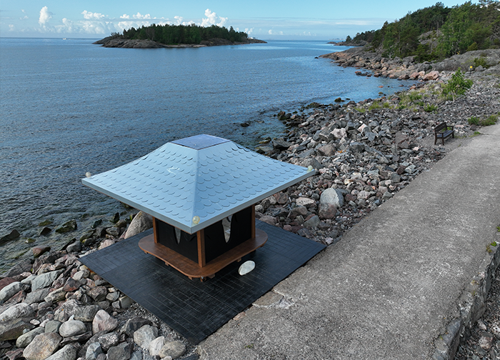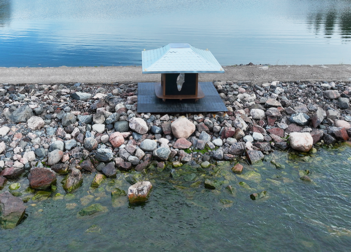 Ángel Yōkai Atā translates as ‘angel’ in Spanish/English, ‘spirit’ in Japanese and ‘house’ in Teneek, the language of the Huasteca people of Mexico. It is a pavilion set on Kuninkaansaari islands in Helsinki, Finland.